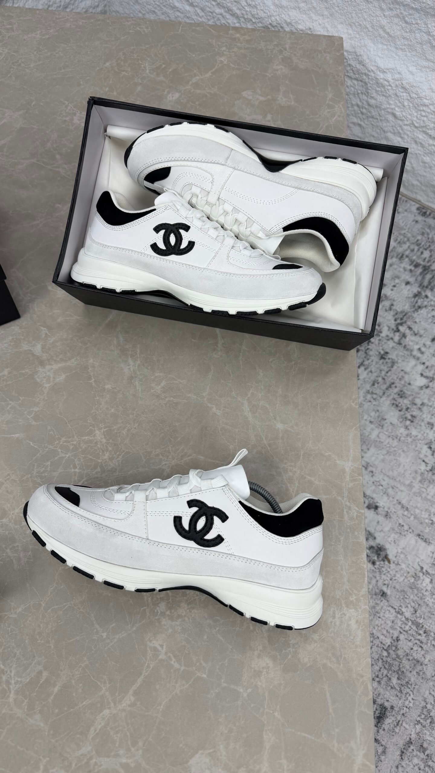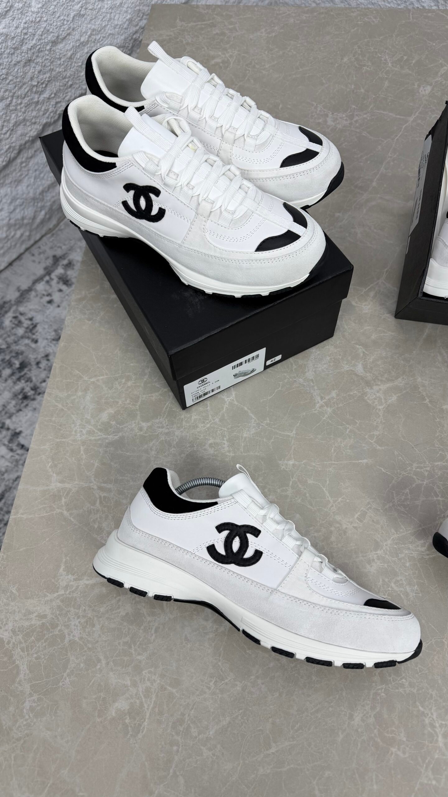 Ces sneakers Chanel Runner allient confort et style sportif avec une tige en mesh technique et cuir, rehaussée du logo CC iconique sur le côté pour une touche chic et contemporaine.