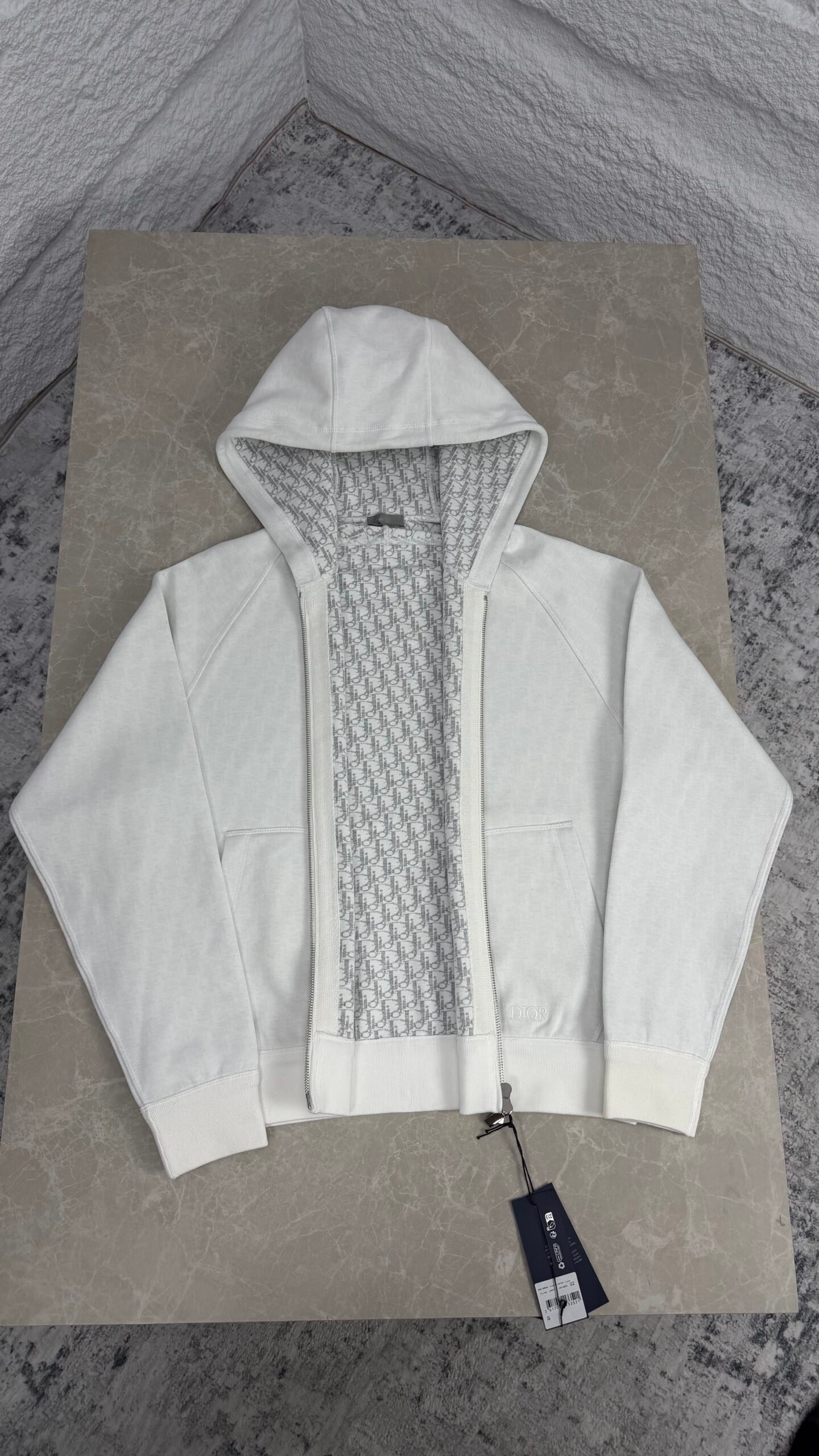 Cardigan Dior en maille raffinée, alliant élégance intemporelle et finitions soignées. Une pièce sophistiquée, signature du savoir-faire de la Maison.