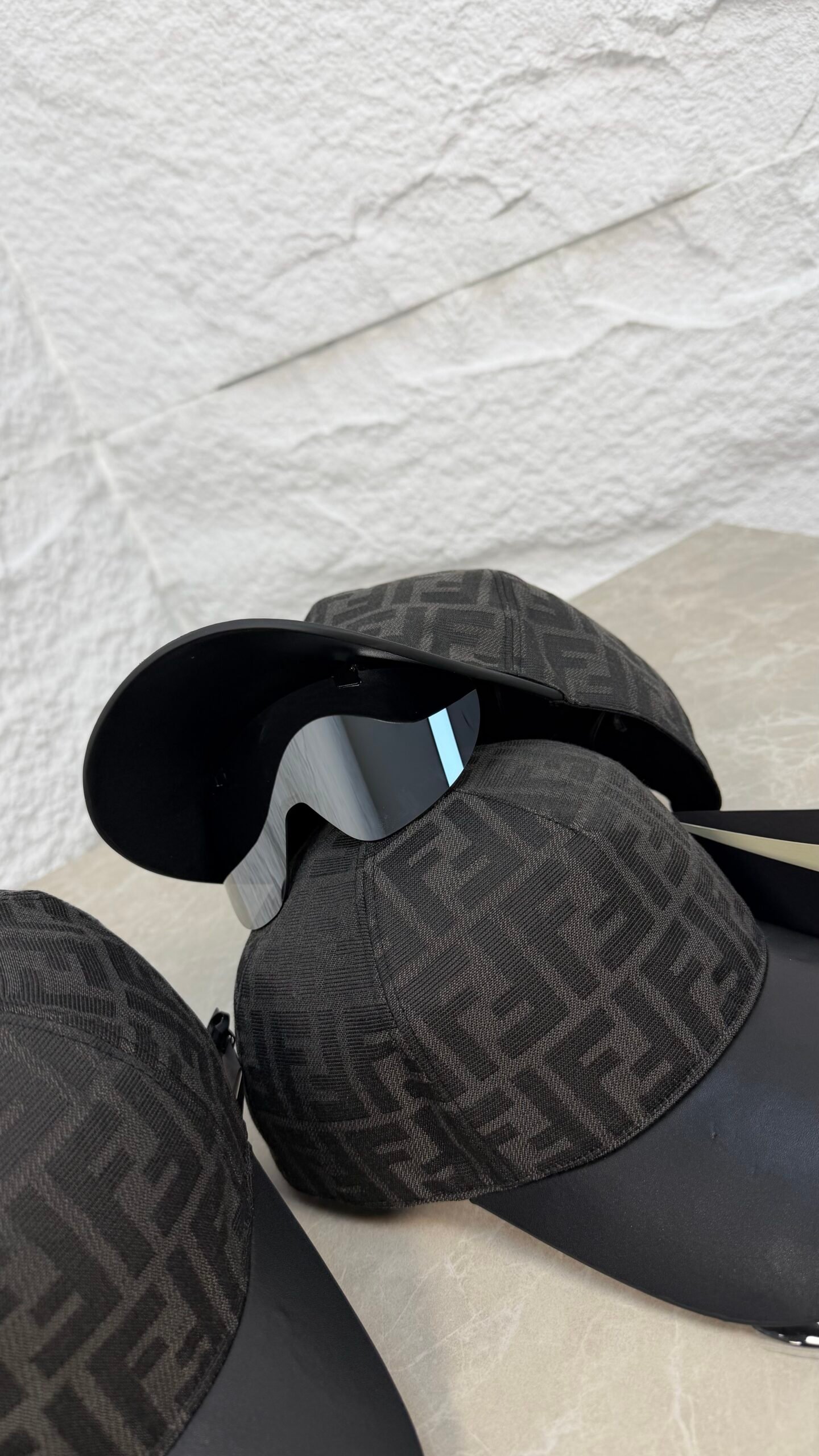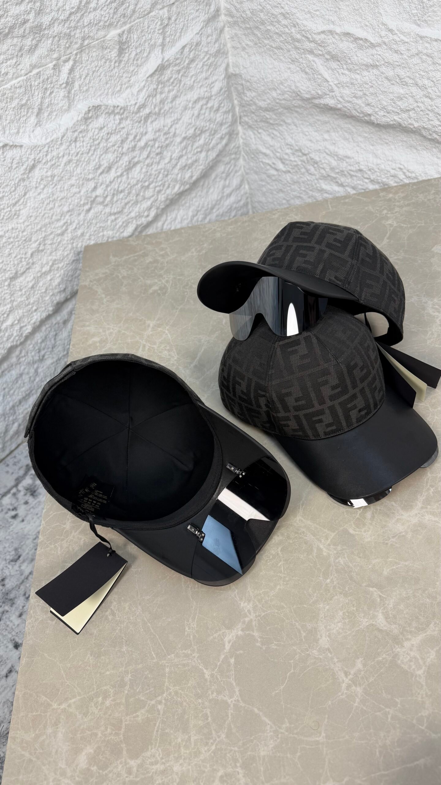 Casquette de baseball Fendi innovante, équipée de lunettes intégrées pour un style avant-gardiste. Alliant design contemporain et fonctionnalité, elle offre un look audacieux et pratique pour la ville ou les sorties.