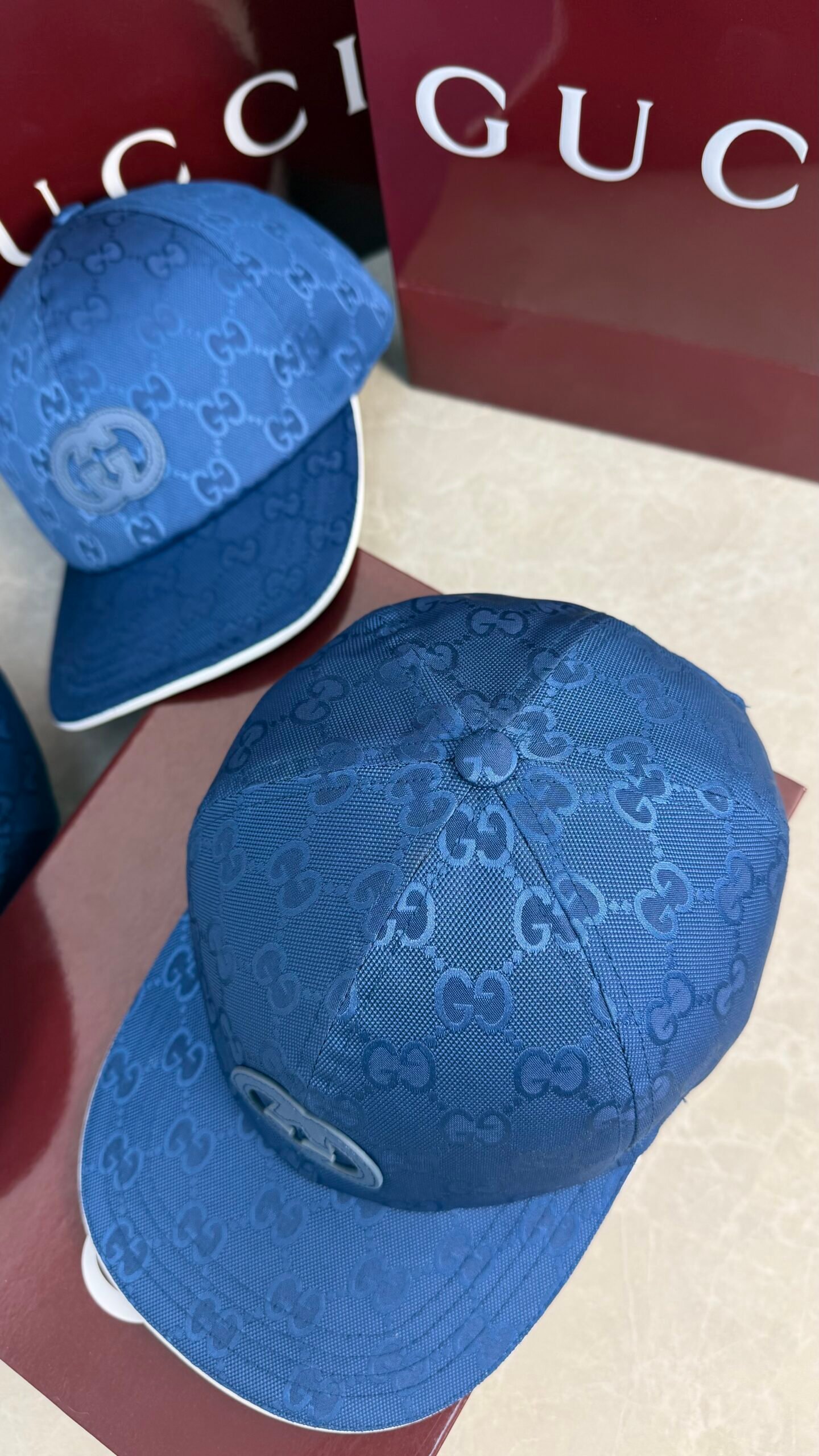 La toile GG agrémente à la perfection cette casquette. Le motif bleu et ébène est mis en valeur par l’emblématique bande Web.
