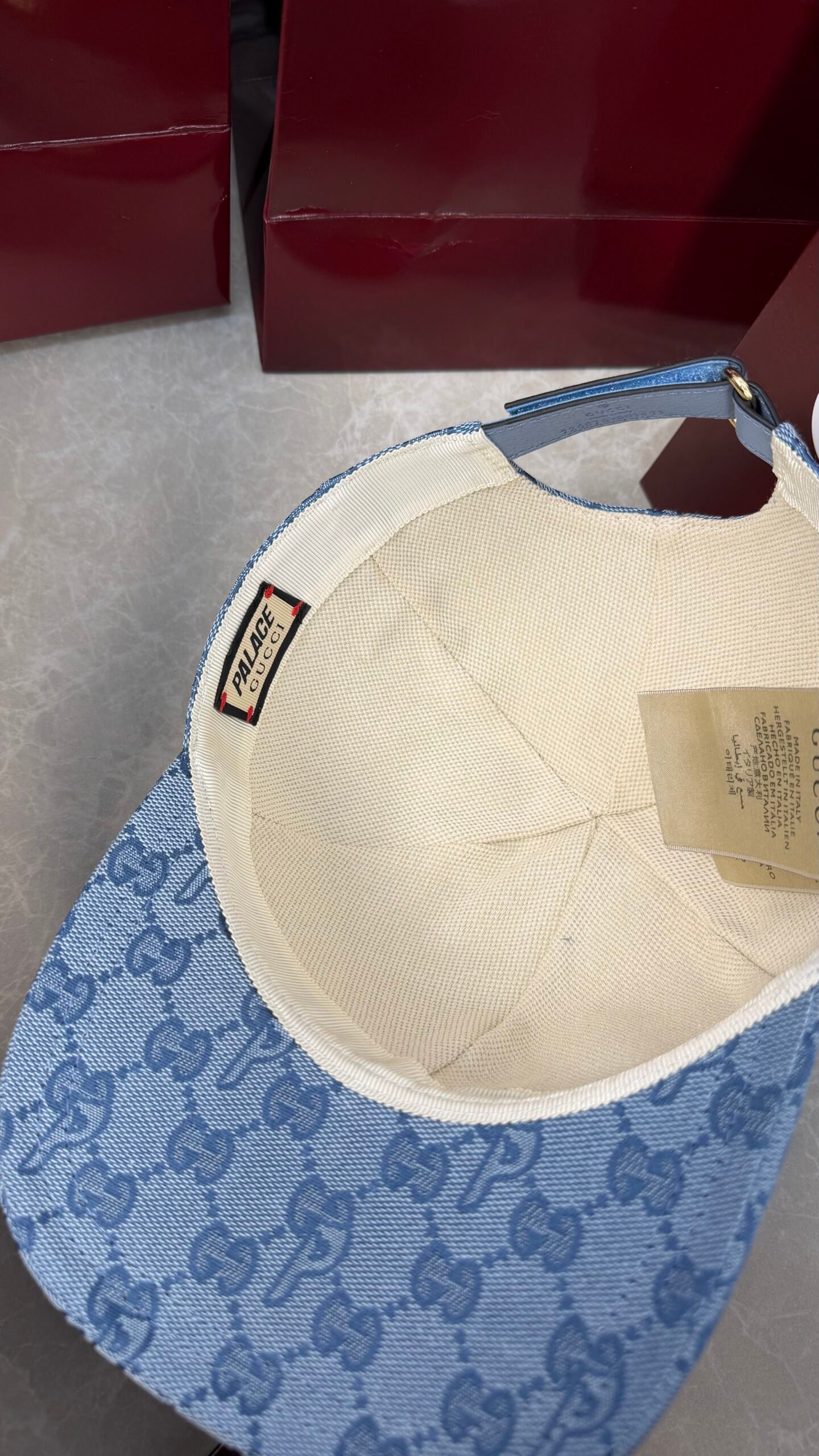Cette casquette Gucci x Palace allie le streetwear audacieux de Palace au luxe italien de Gucci. Confectionnée en toile GG‑P canvas, elle affiche un branding co‑signé iconique, parfaite pour un style urbain et haut de gamme.
