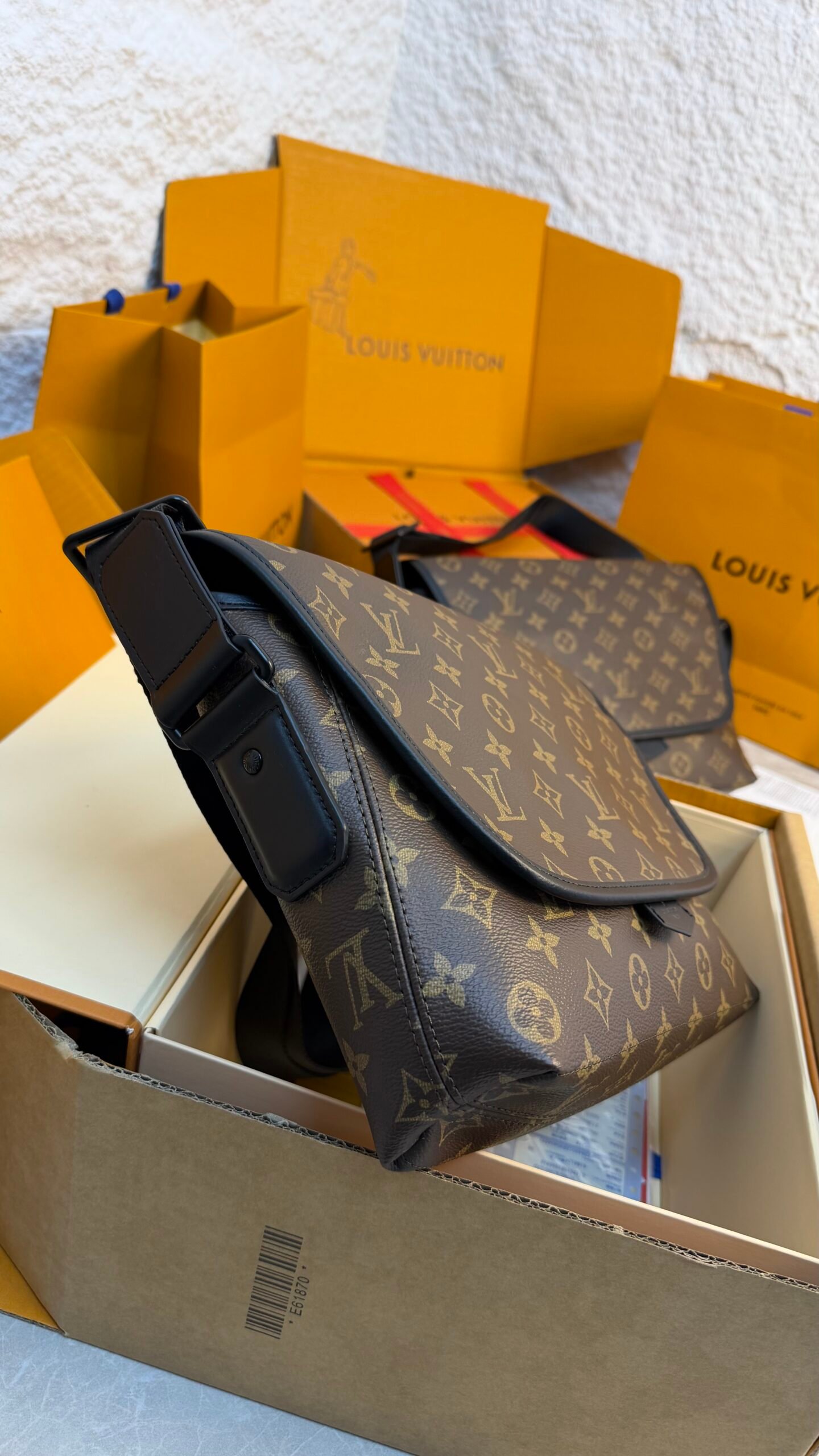 Le sac Messenger Trio Macassar revisite la toile Monogram dans une version aux finitions noires contrastées. Fonctionnel et moderne, il comprend une poche zippée ainsi qu’un porte-monnaie amovible attaché à la bandoulière.