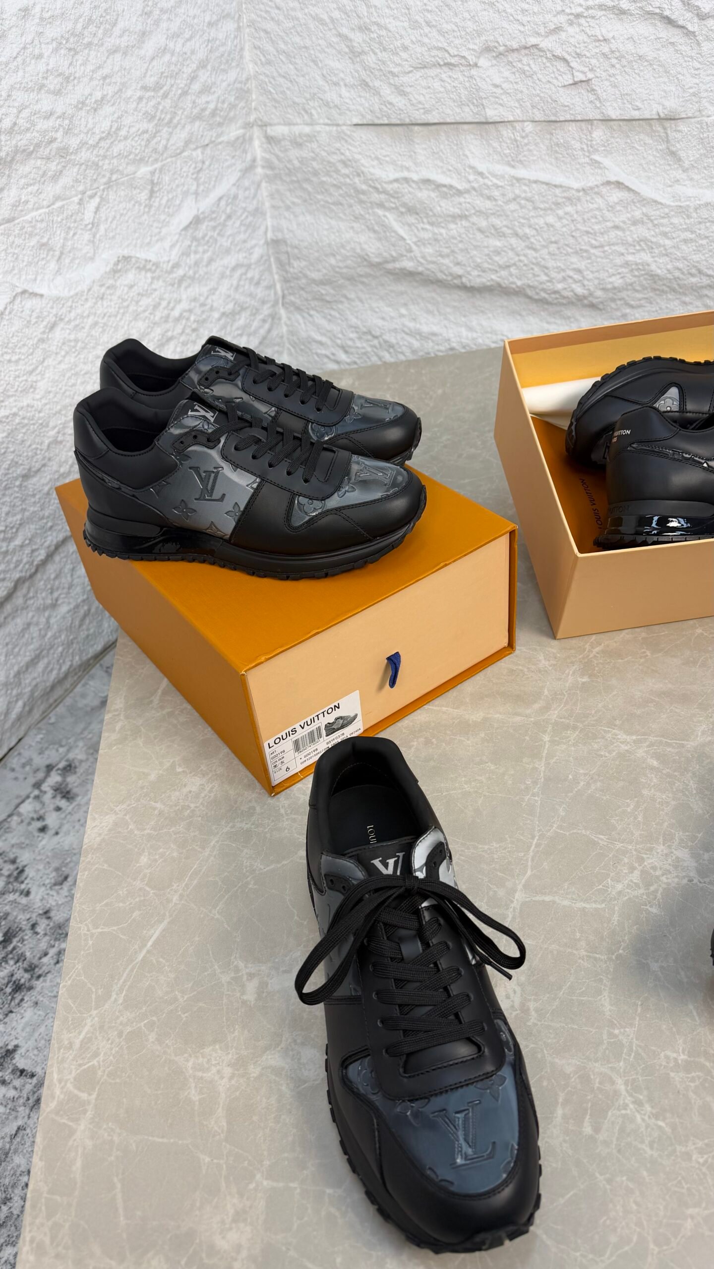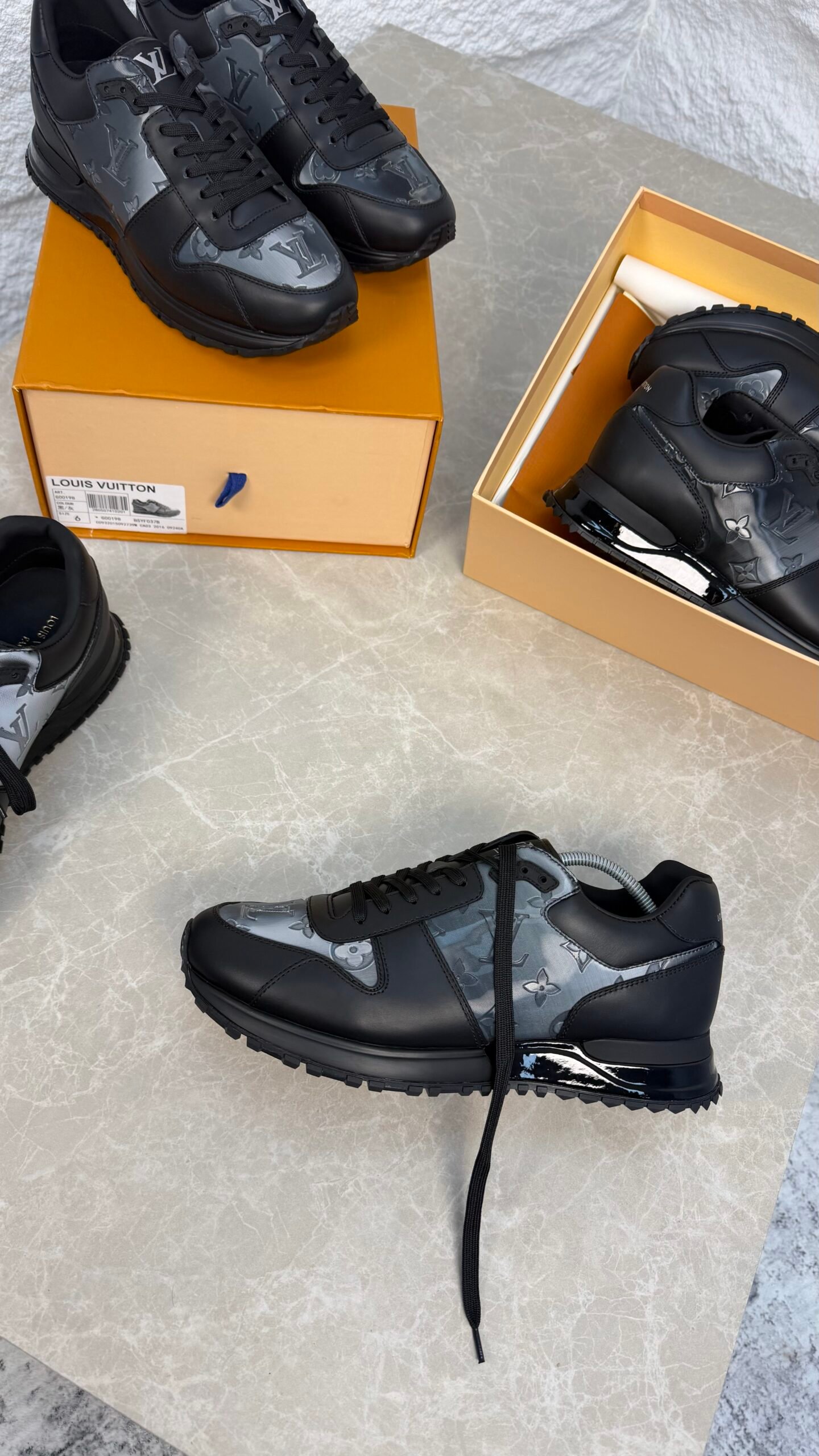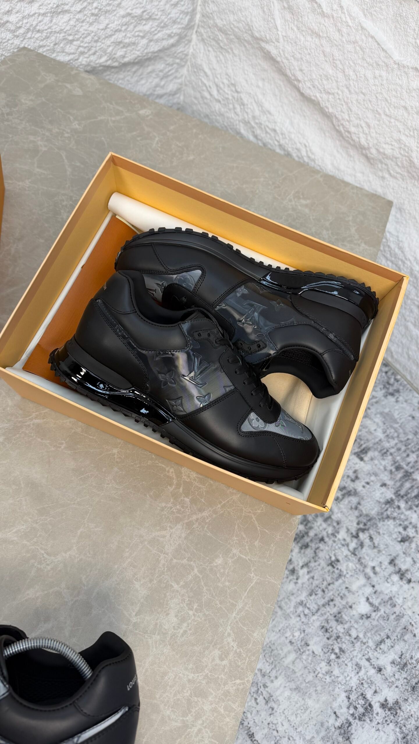 La sneaker Run Away s’inspire des chaussures de course classiques et fait partie des modèles emblématiques de Louis Vuitton. Elle associe textile irisé à motif Monogram et cuir de veau, avec une semelle en gomme technique légère et des finitions réalisées à la main.